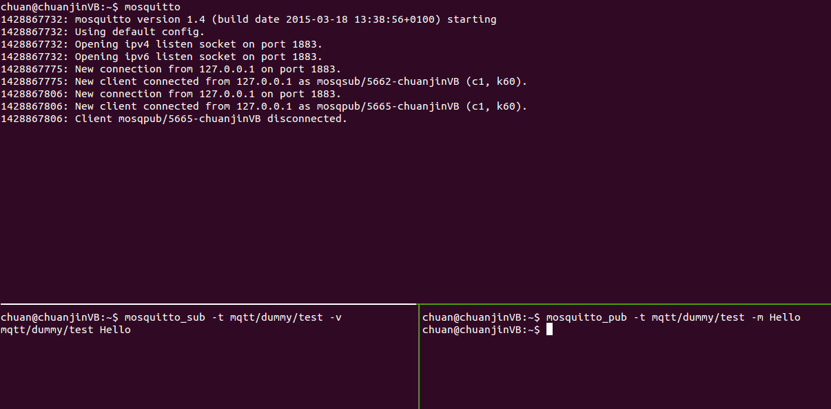 Once installed, you may find mosquitto broker ships with useful command line tools for testing the pub/sub behavior