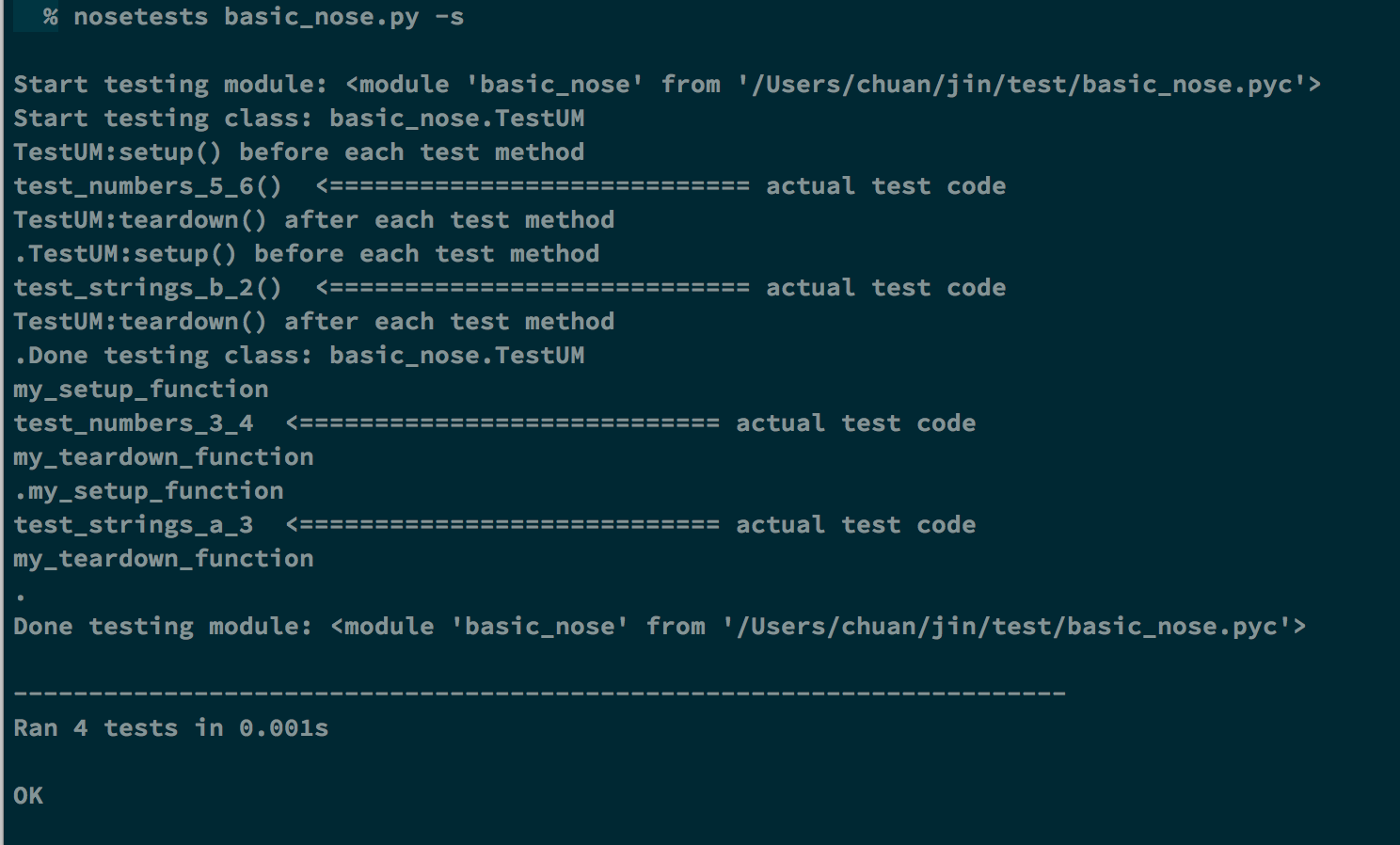 nosetests Posted on 2015-06-17 Edited on 2020-05-23 In Coding Disqus: A good practice to use nose for testing. Execution results shows below: References: http://pythontesting.net/framework/nose/nose-introduction/ Post author: Chuan Jin Post link: http://chuanjin.me/2015/06/17/nosetests/ Copyright Notice: All articles in this blog are licensed under BY-NC-SA unless stating additionally.