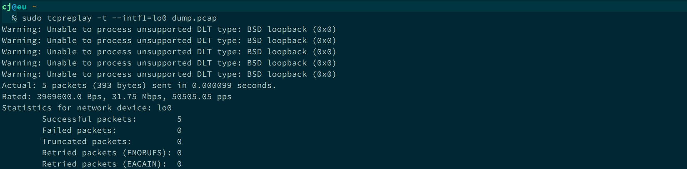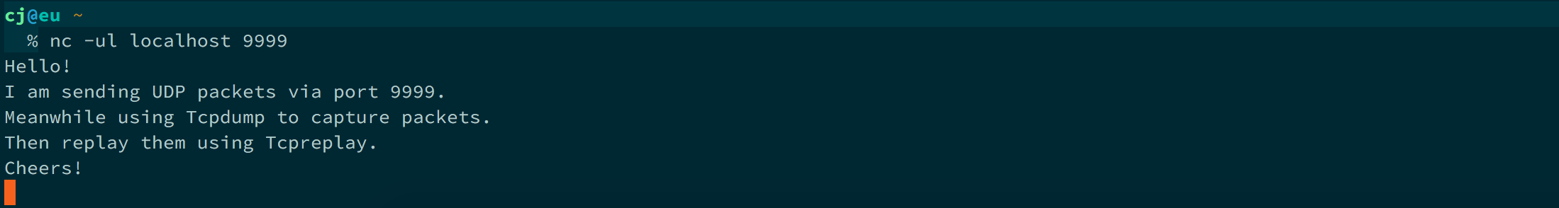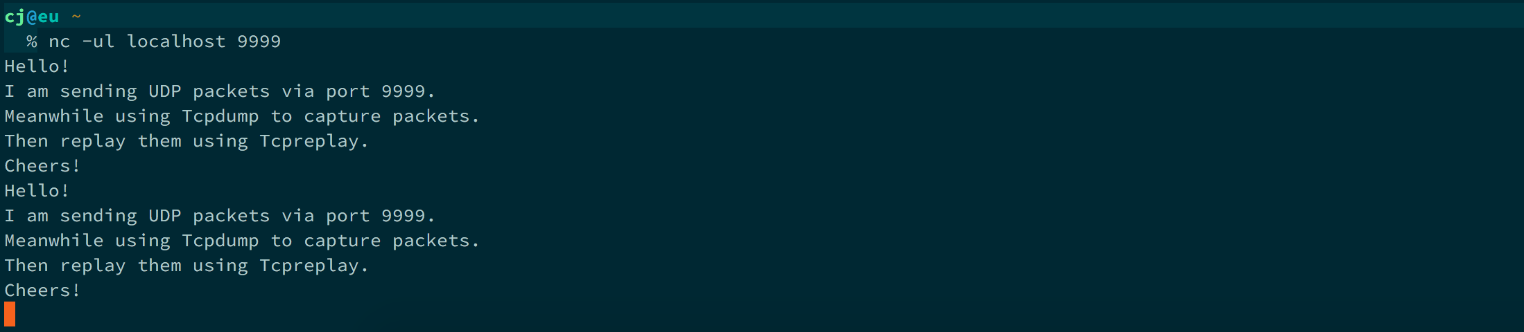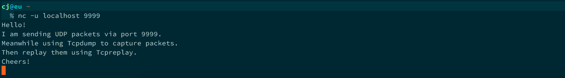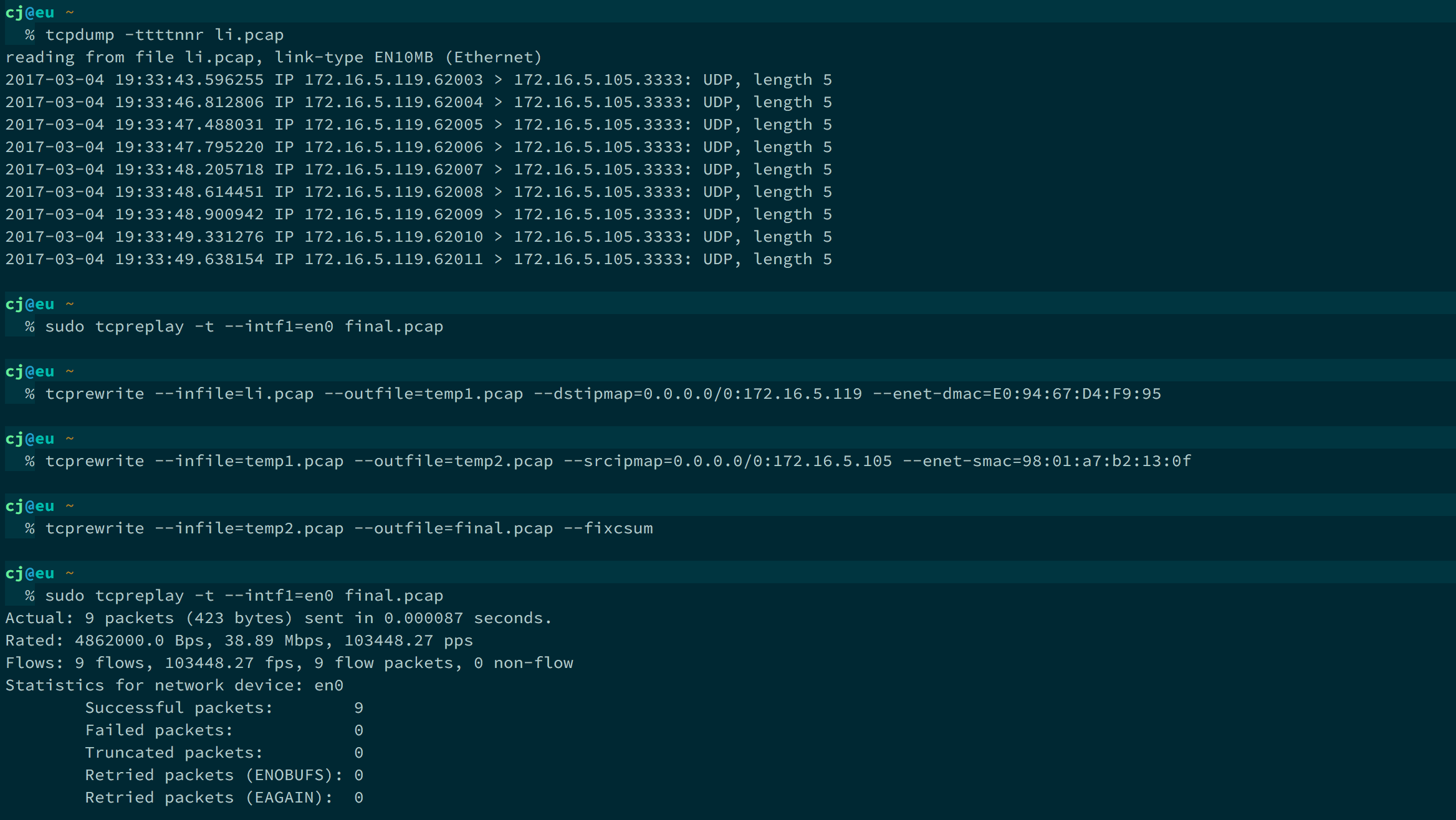 Here demostrate sending some UDP packets, using tcpdump to capture them and using Tcpreplay to playback.