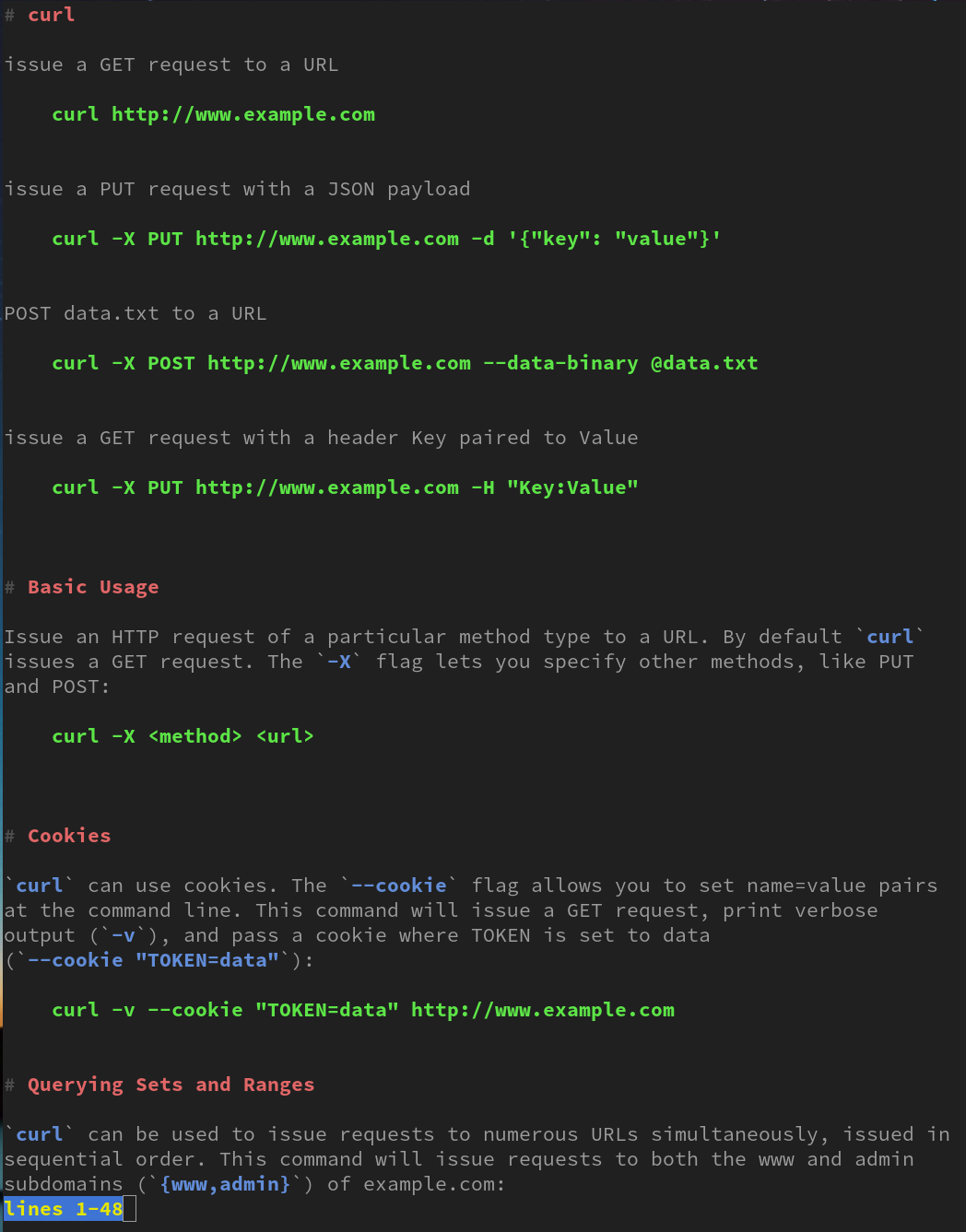 So I consult tldr, cheat or eg before I ask man and Google.